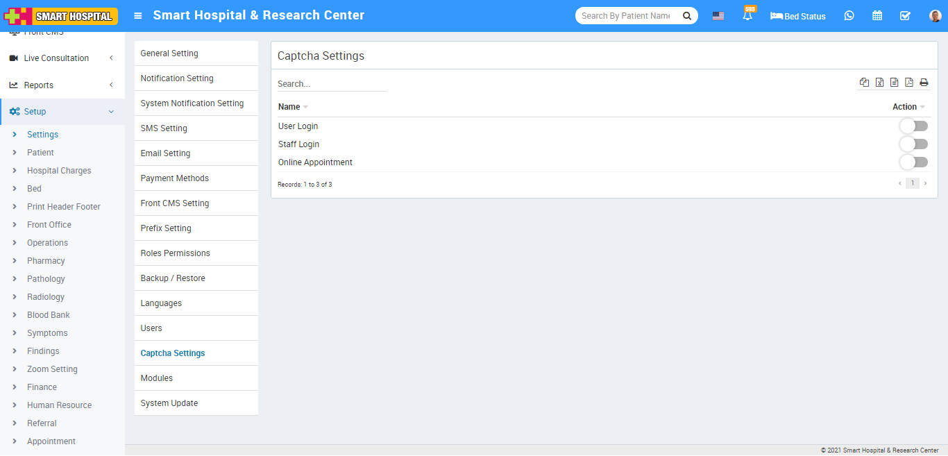 Here in the Smart Hospital we are providing captcha code verification for 3 events User login, Staff login, Online Appointment.