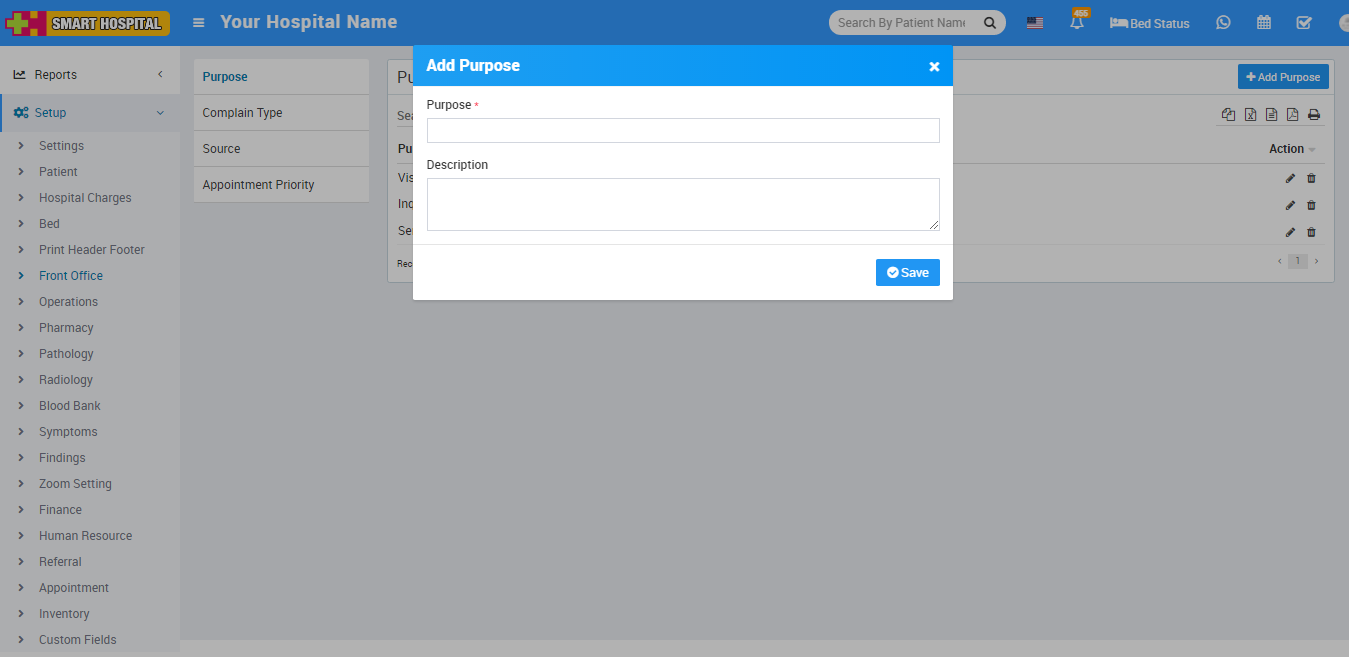 To add Visitor Purpose click on + Add Purpose button now enter Purpose and Description and click on Save button.