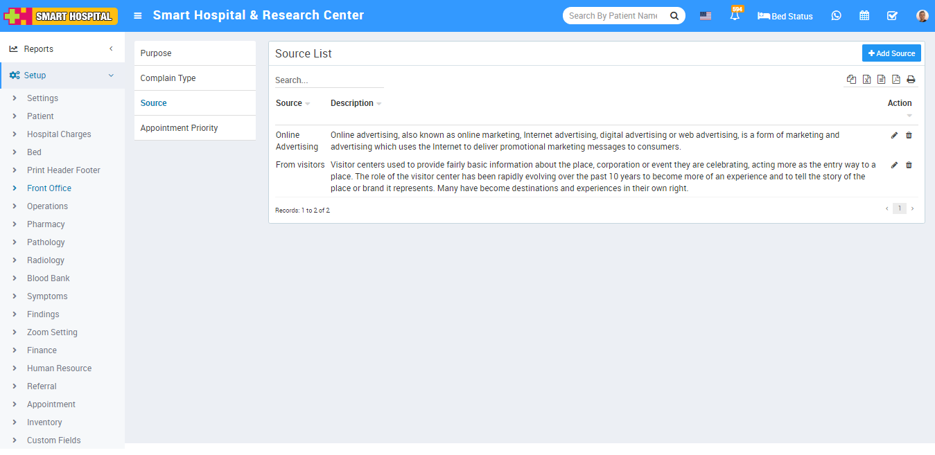 To edit Source click on edit and to delete Source click on delete icon present at Action column.