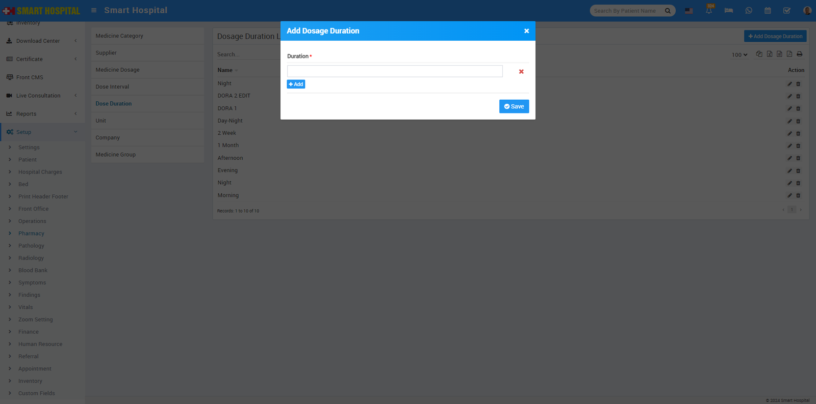 To add Dosage Duration click on + Add Dosage Duration button now enter Dosage Duration.