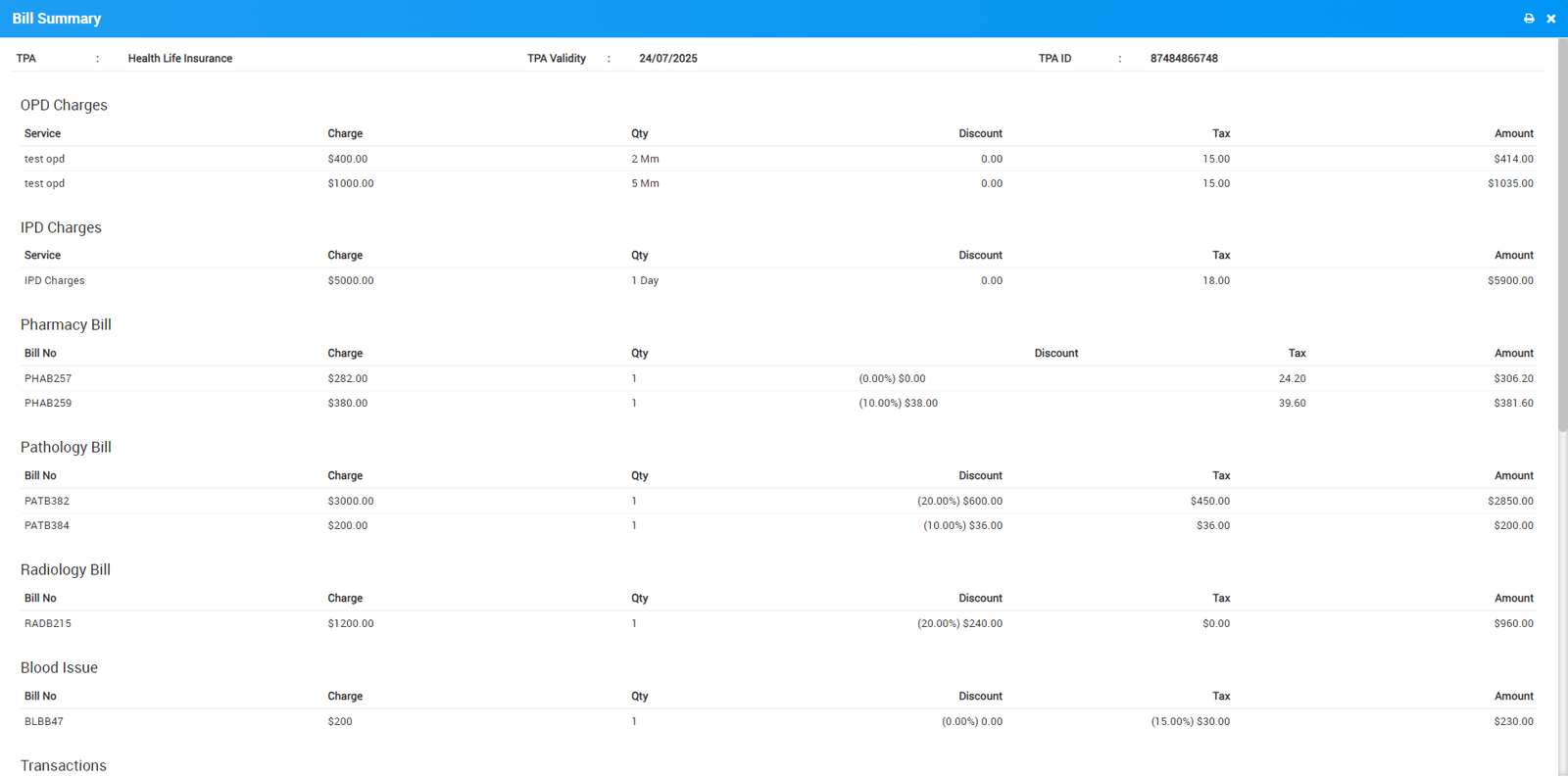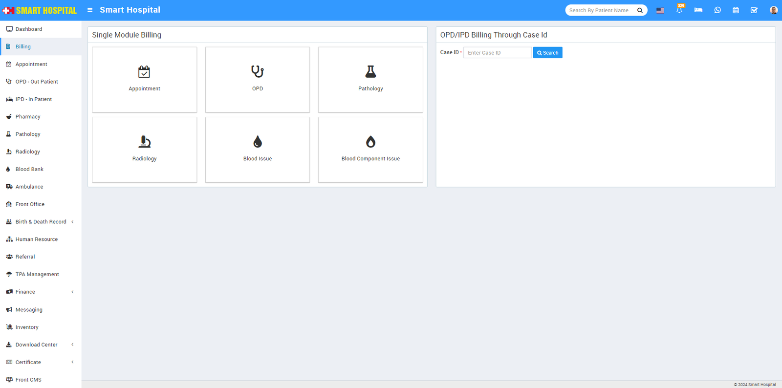 In Smart Hospital there is a feature of centralized billing so hospital staff not need to go to each module to generate patient bill individually for individual modules.