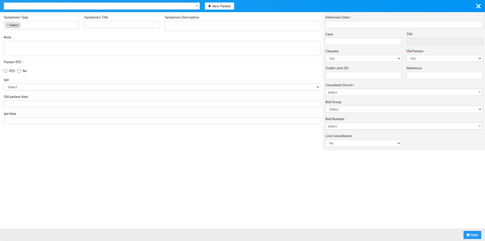 4. IPD - In Patient - for all IPD patients admission, consultant register, diagnosis, timeline, IPD charges, payments, bill and discharged ipd patients