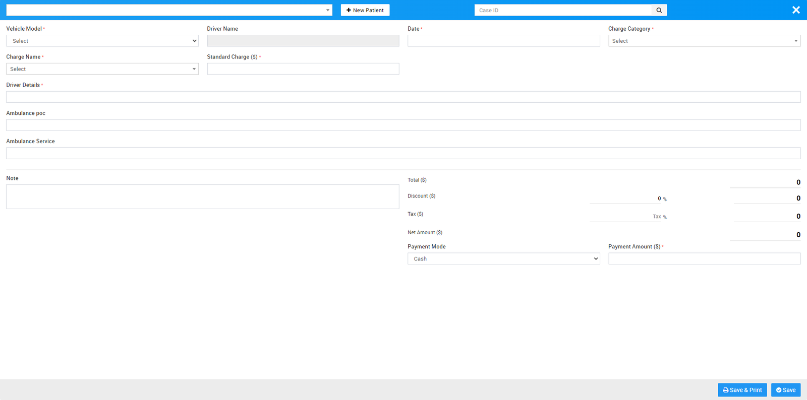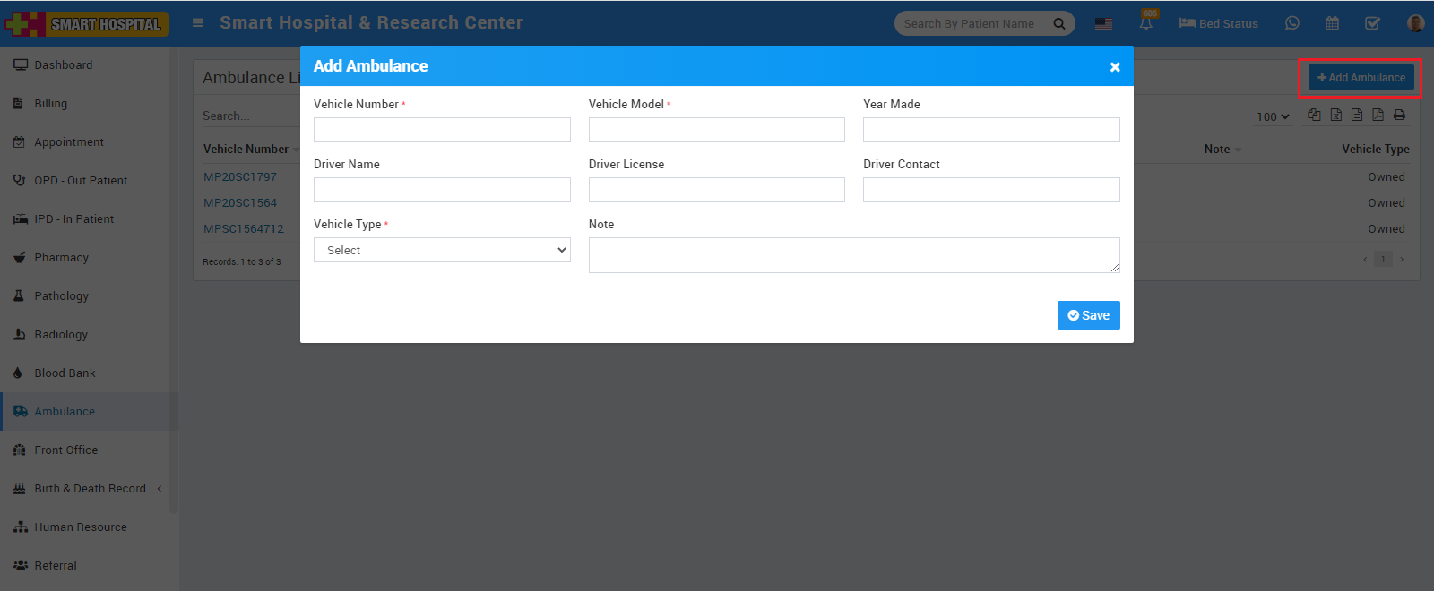 10. Ambulance - for managing ambulance vehicles and ambulance call details