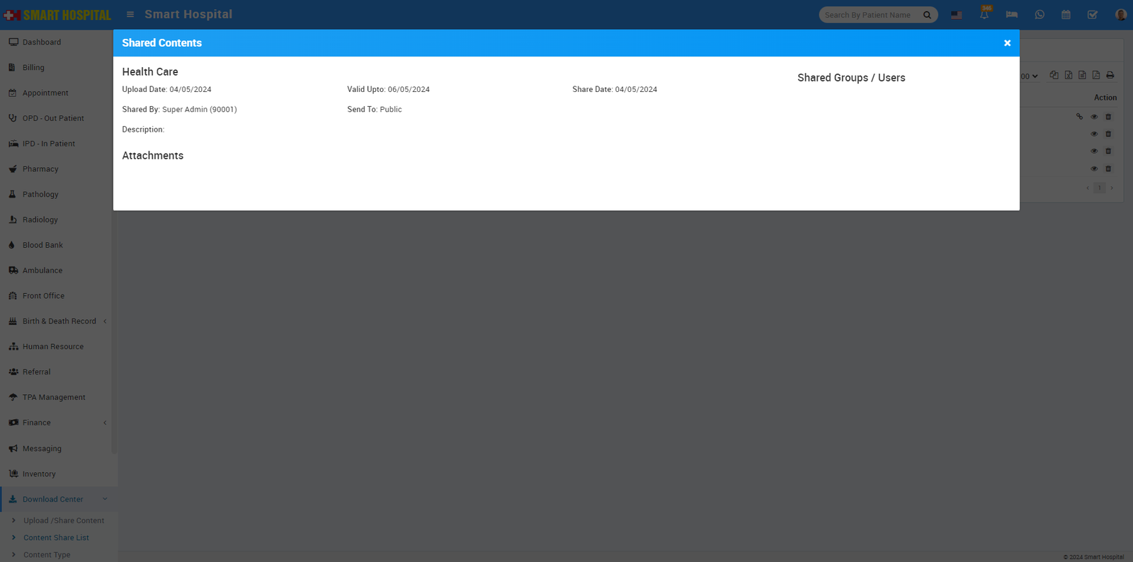 8. At this point we have completed basic settings of our hospital. Now we will add our hospital other details in Smart Hospital like Hospital Charges, Bed, Ward, Floor, Departments, Doctors etc.