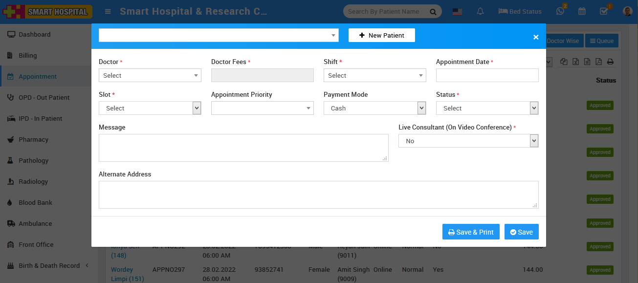 2. Appointment - To manage all patients online/offline booking details.