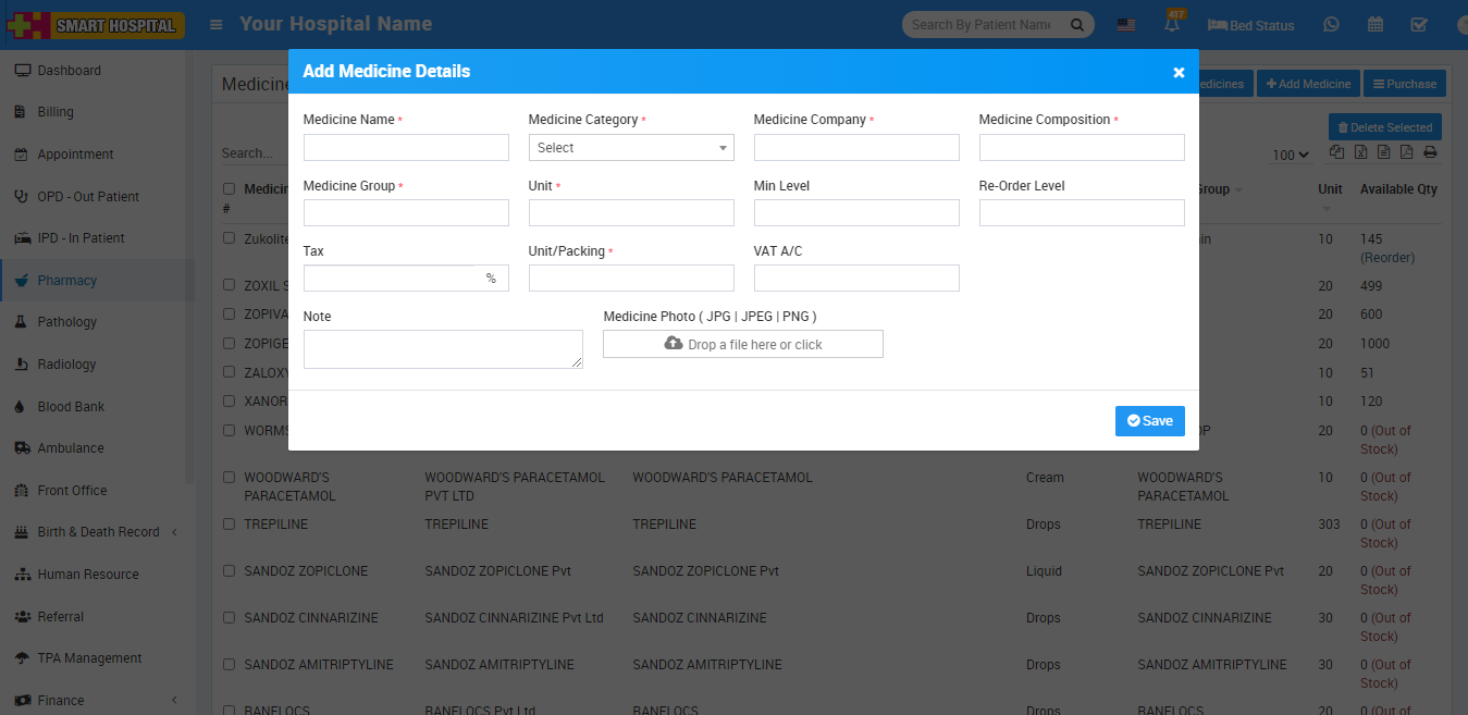Repeat same process for other module like OPD Bill, IPD Prescription, IPD Bill, Bill, Pharmacy Bill, Payslip, Payment Receipt, Birth Record, Death Record, Pathology, Radiology, Operation, Blood Bank Ambulance and Discharge Card.