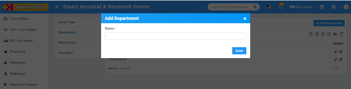 To add Department click on + Add Department button now enter Department Name.