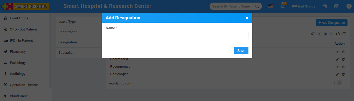 To add Designation click on + Add Designation button now enter Designation Name.