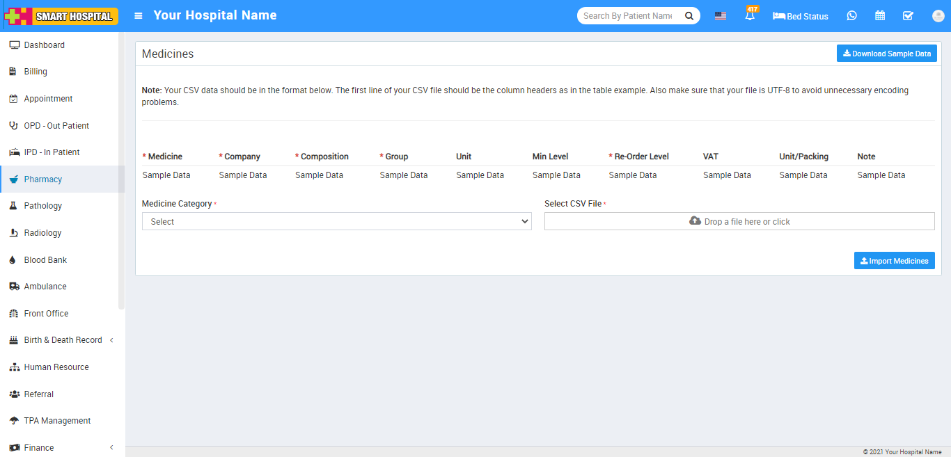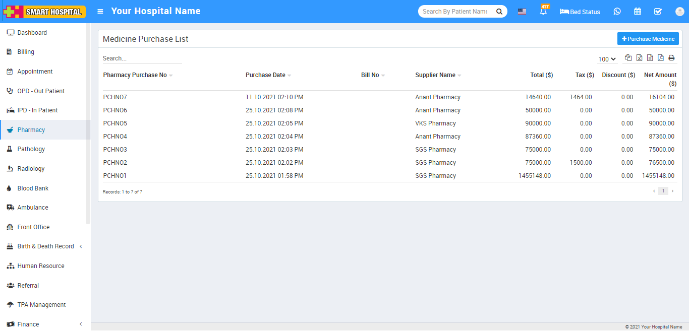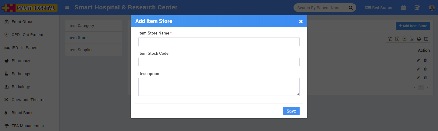 5. Pharmacy - for all medicine list, stock, and pharmacy bills