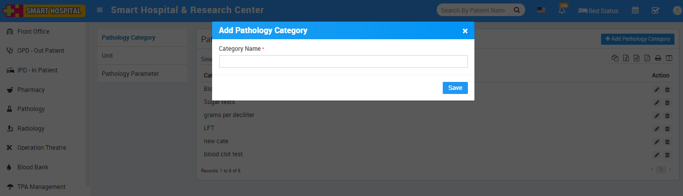 To add Pathology Category click on +Add Pathology Category now enter Pathology Category Name.