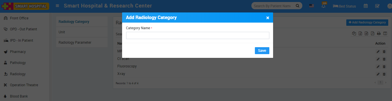 To add Radiology Category click on + Add Radiology Category now enter Radiology Category Name.