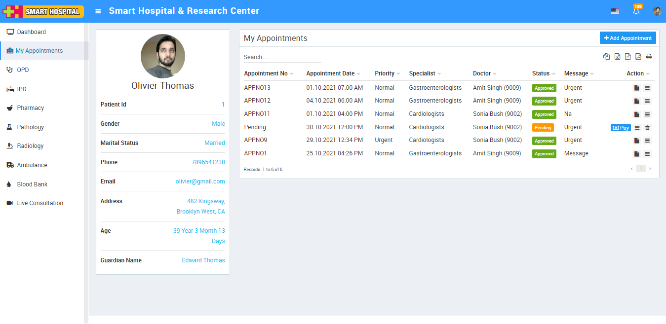 To make online payment for appointment click on Pay button present at Action column.