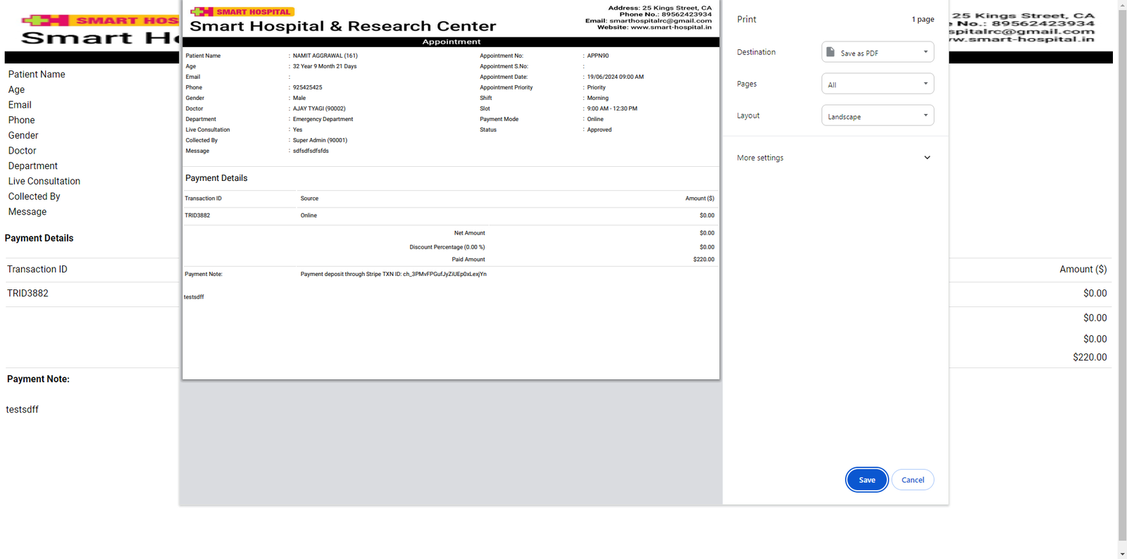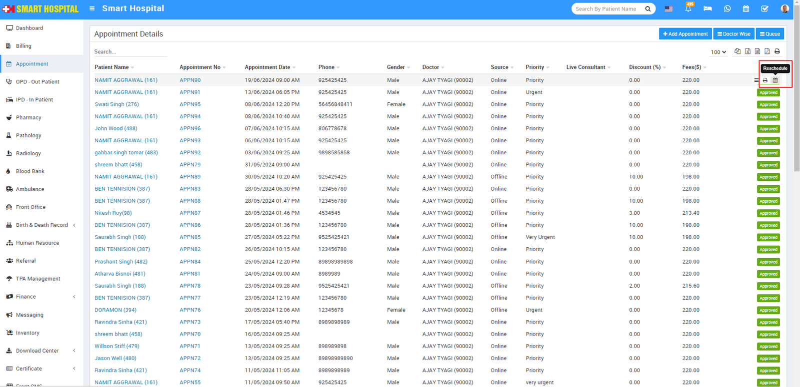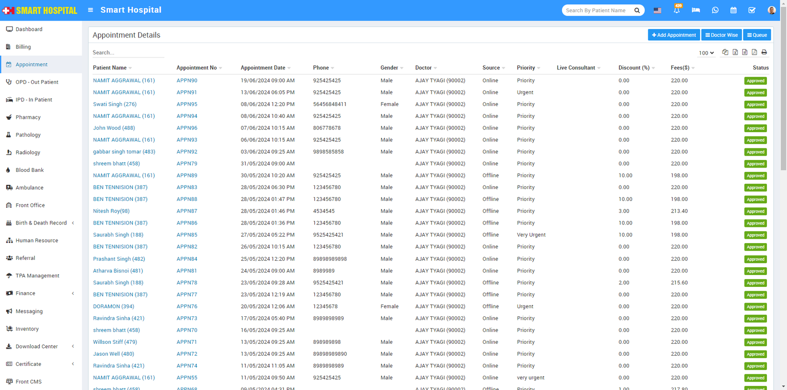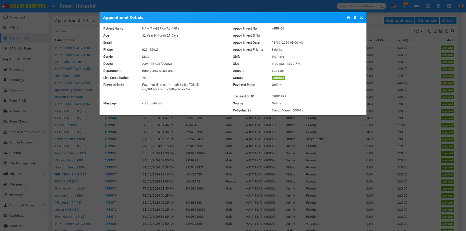 Note- If Appointment is approved and OPD is created for it then if you will change it's status as pending or cancelled then added OPD record will still be exist for the same record.