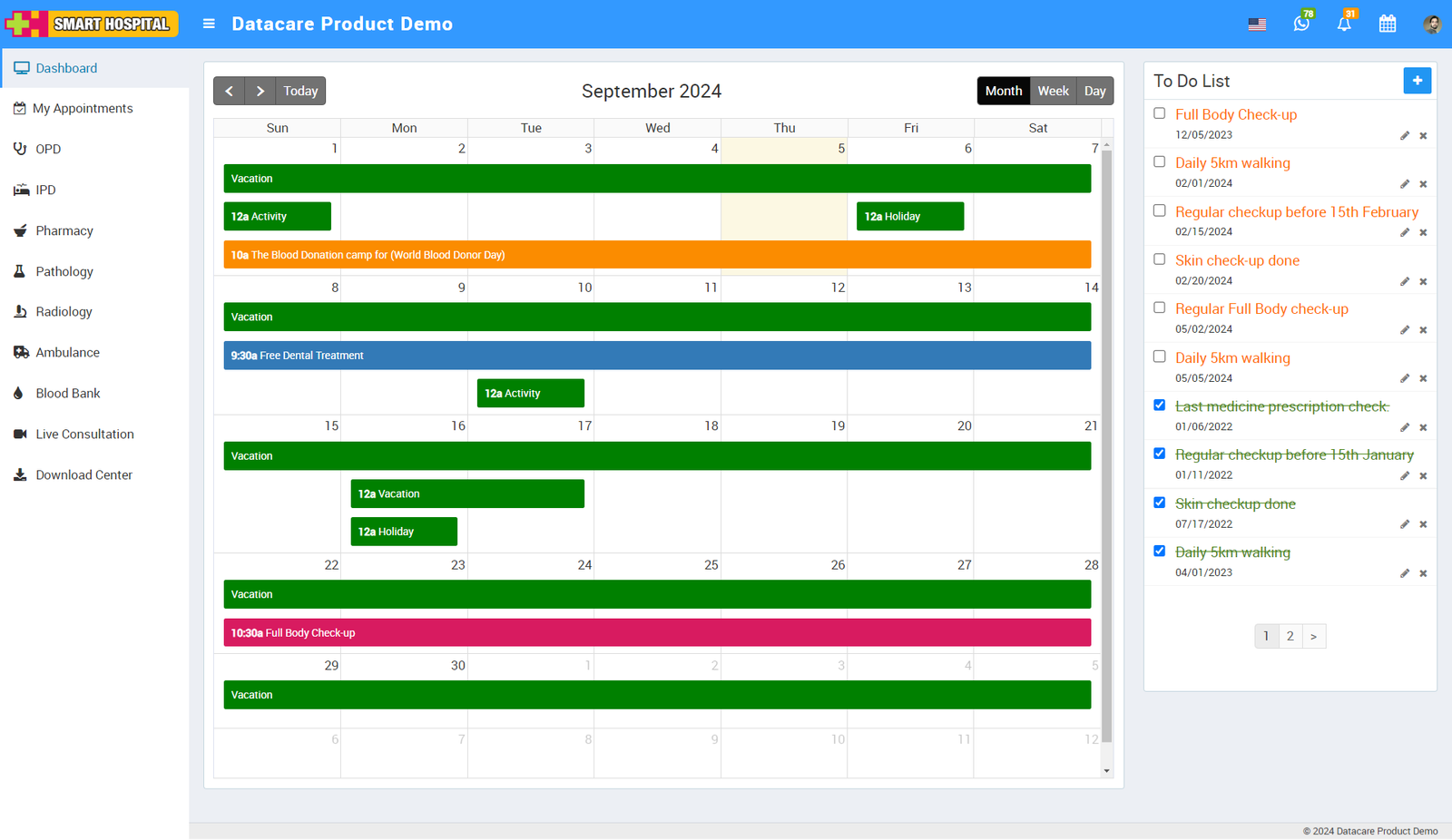 You can see the holiday details on the calendar in both the superadmin and patient logins.