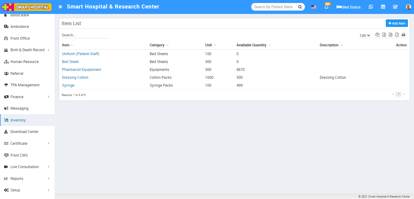 You can view this added record in the Item List page.
