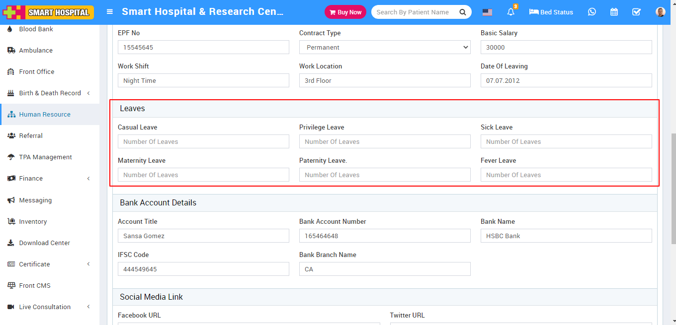 Note - Before apply for leave make sure you have assigned leave to staff from Human Resource > Edit Staff at Leave section otherwsie on Leave Type drop down no record will be shown.