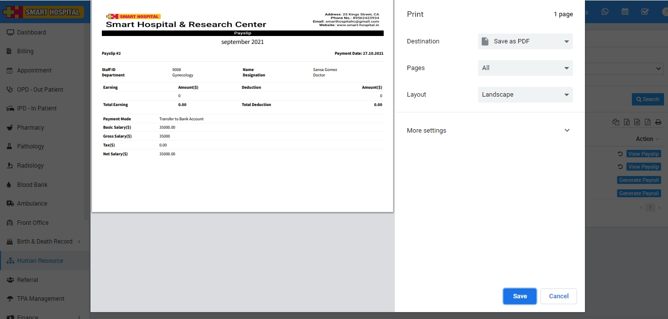 Note: Do not print payslip directly, here select the Destination (save as pdf) and save pdf file and then print payslip using this pdf file.