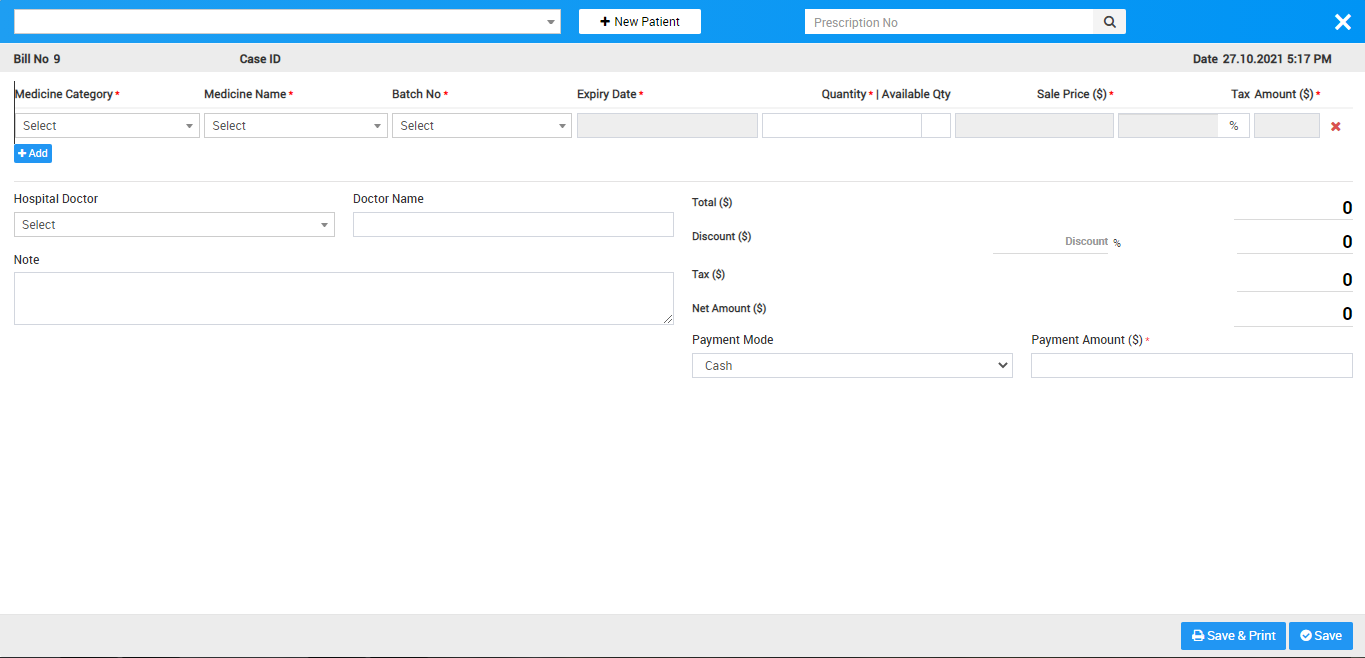 In Pharmacy there are two ways to generate Pharmacy bill that are generate pharmacy bill manually or you can generate patient pharmacy bill through their prescription id.