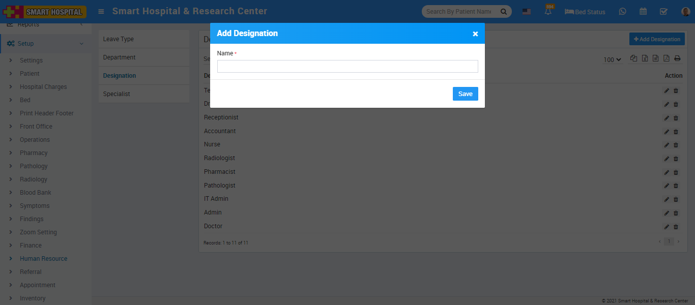 To add Designation click on + Add Designation button now enter Name and click on Save button.