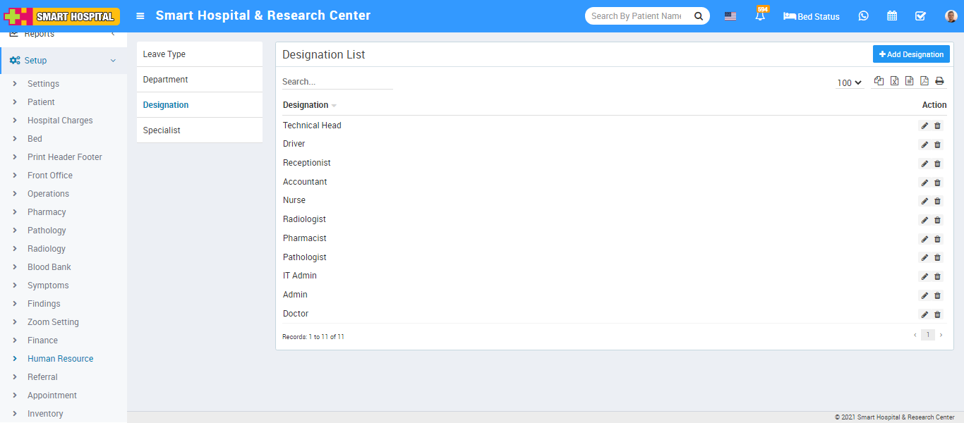 You can check added Designation record at Designation List page.