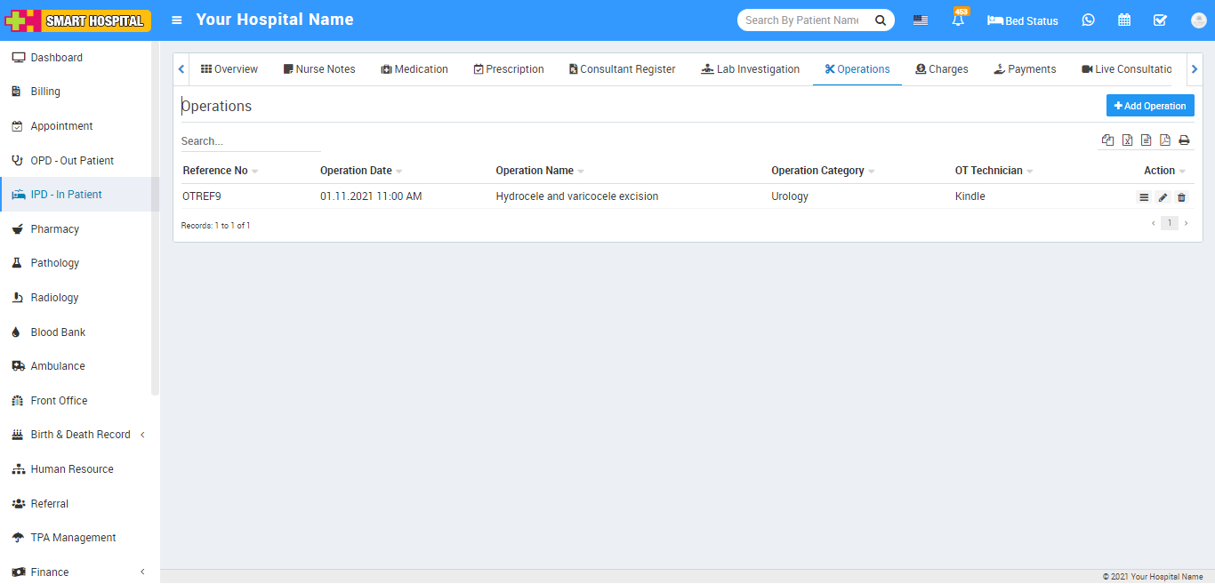 After create Operation record you can view this added record at Operation Theatre list page.