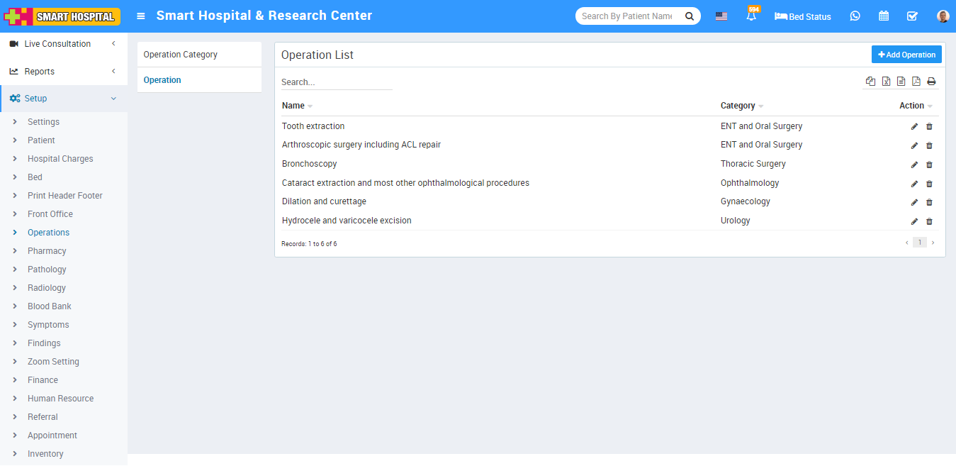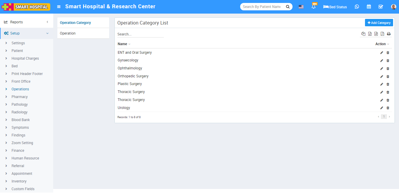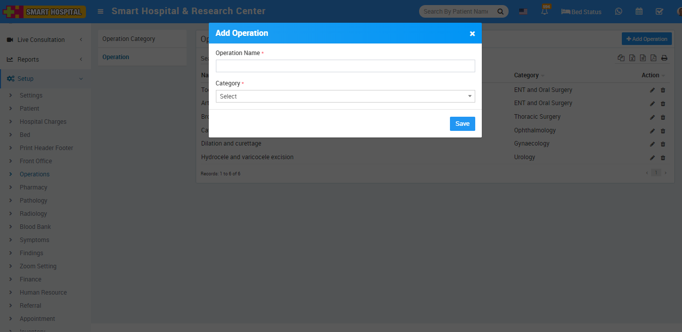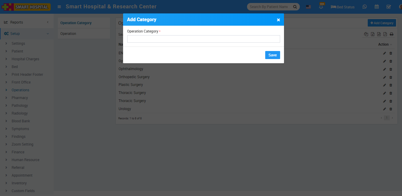 To setup Operation Theatre type and Categories go to Setup > Operation Theatre, here first we should add Operation Theatre Category then add Type.