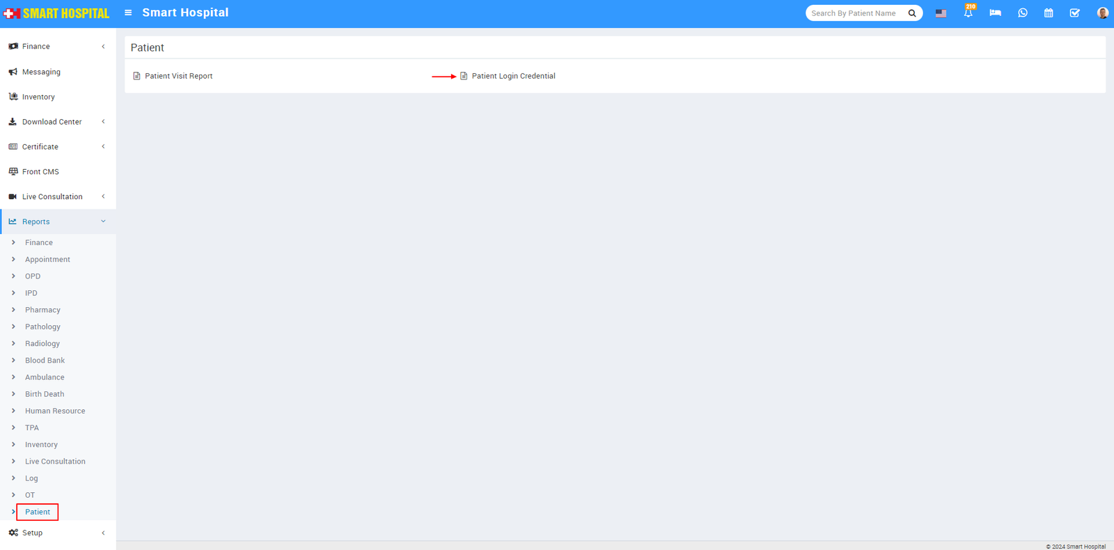 To check Patient Login Credential report, go to Reports > Patient, here you will see two report available Patient Visit Report and Patient Login Credential