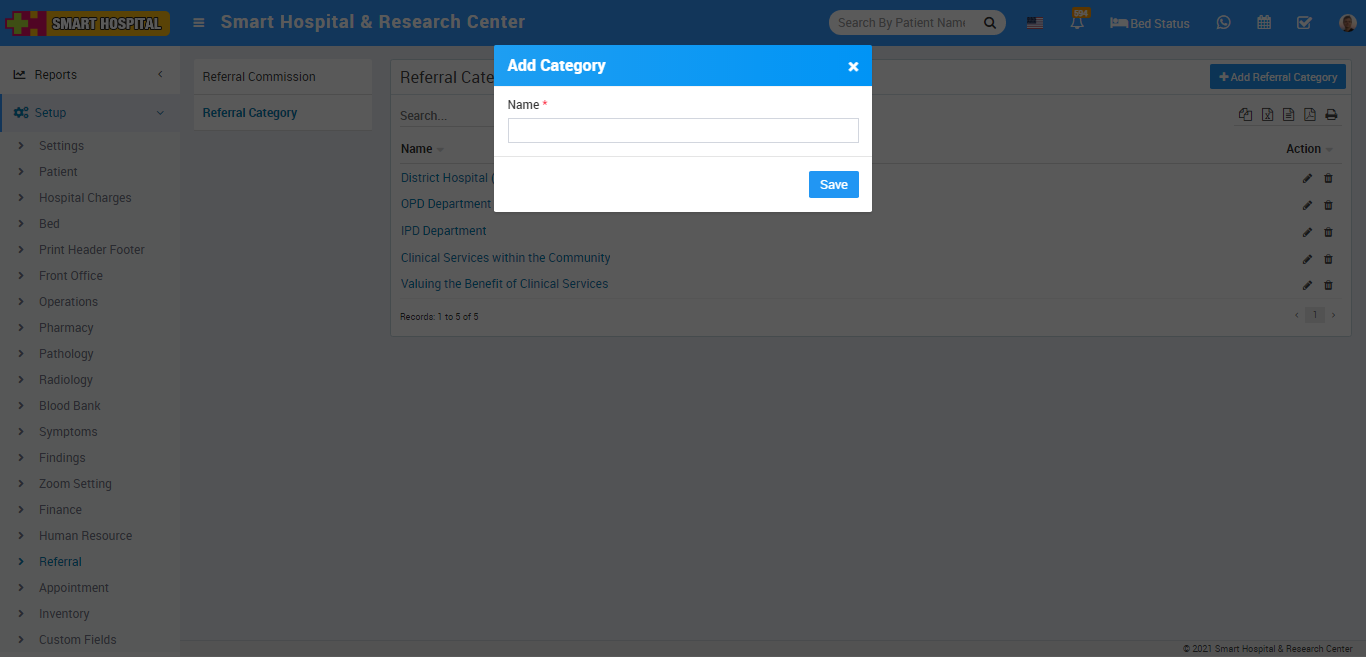To add Referral Category click on + Add Referral Category button now enter Name and click on Save button.