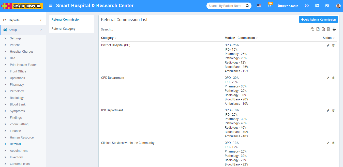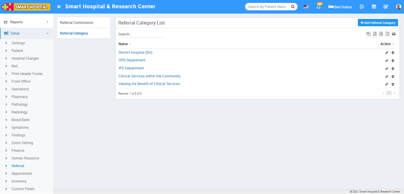 To edit Referral Category click on edit and to delete Referral Category click on delete icon present at Action column.