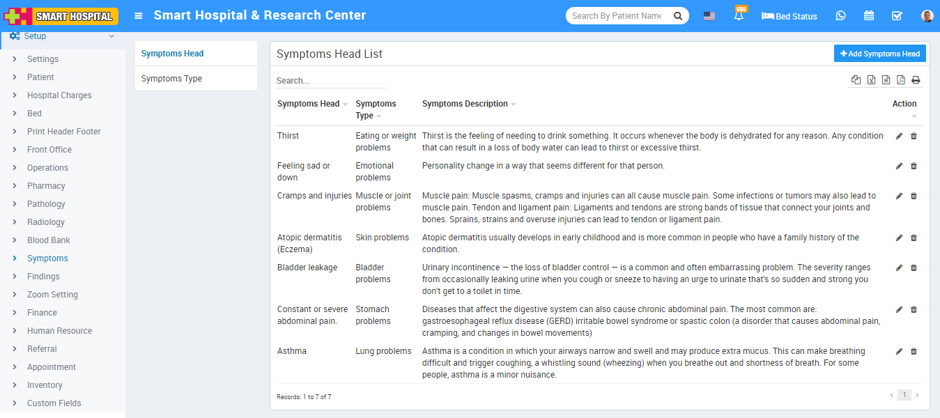 You can check added Symptoms Head record at Symptoms Head List page.