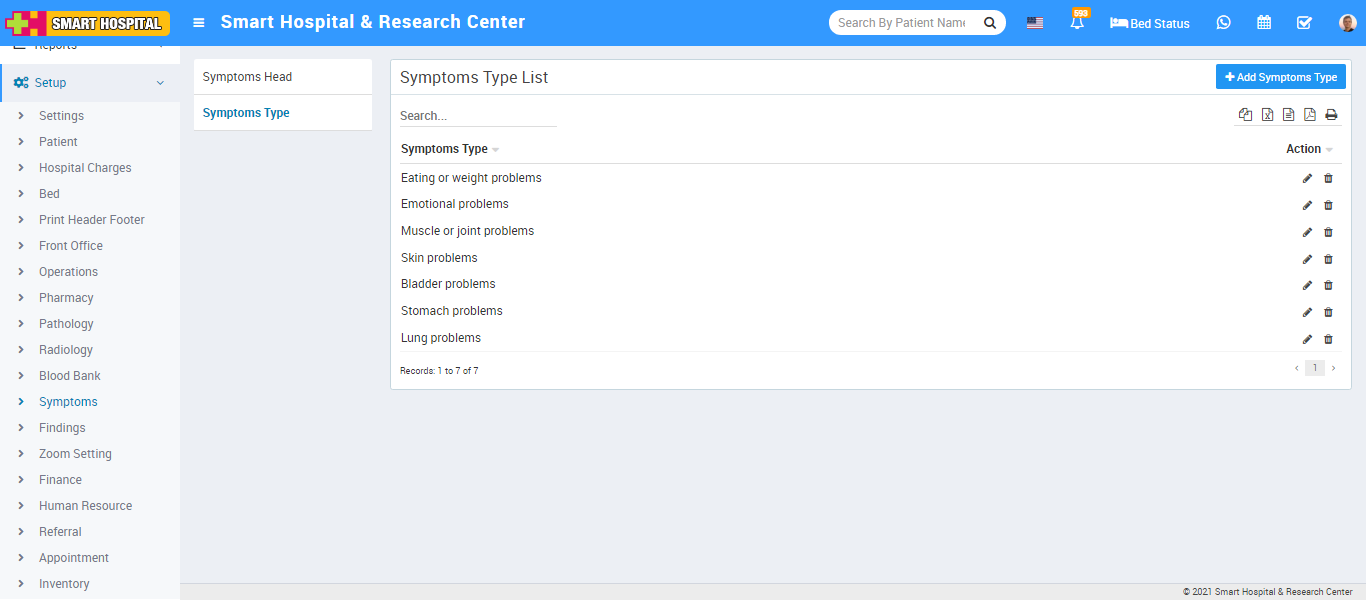 To edit Symptoms Type click on edit and to delete Symptoms Type click on delete icon present at Action column.