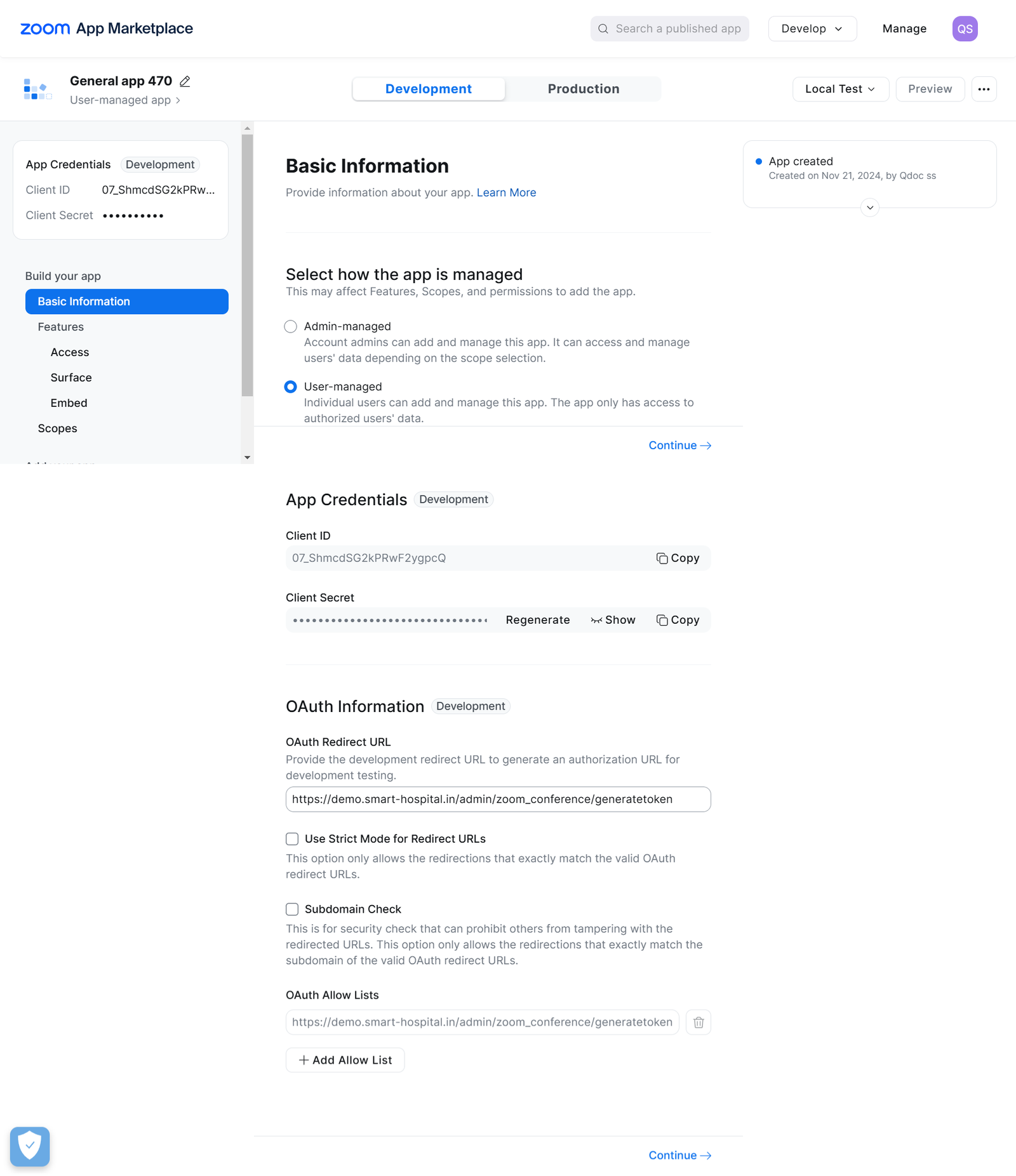After click on submit button you have successfully generated zoom api credentials